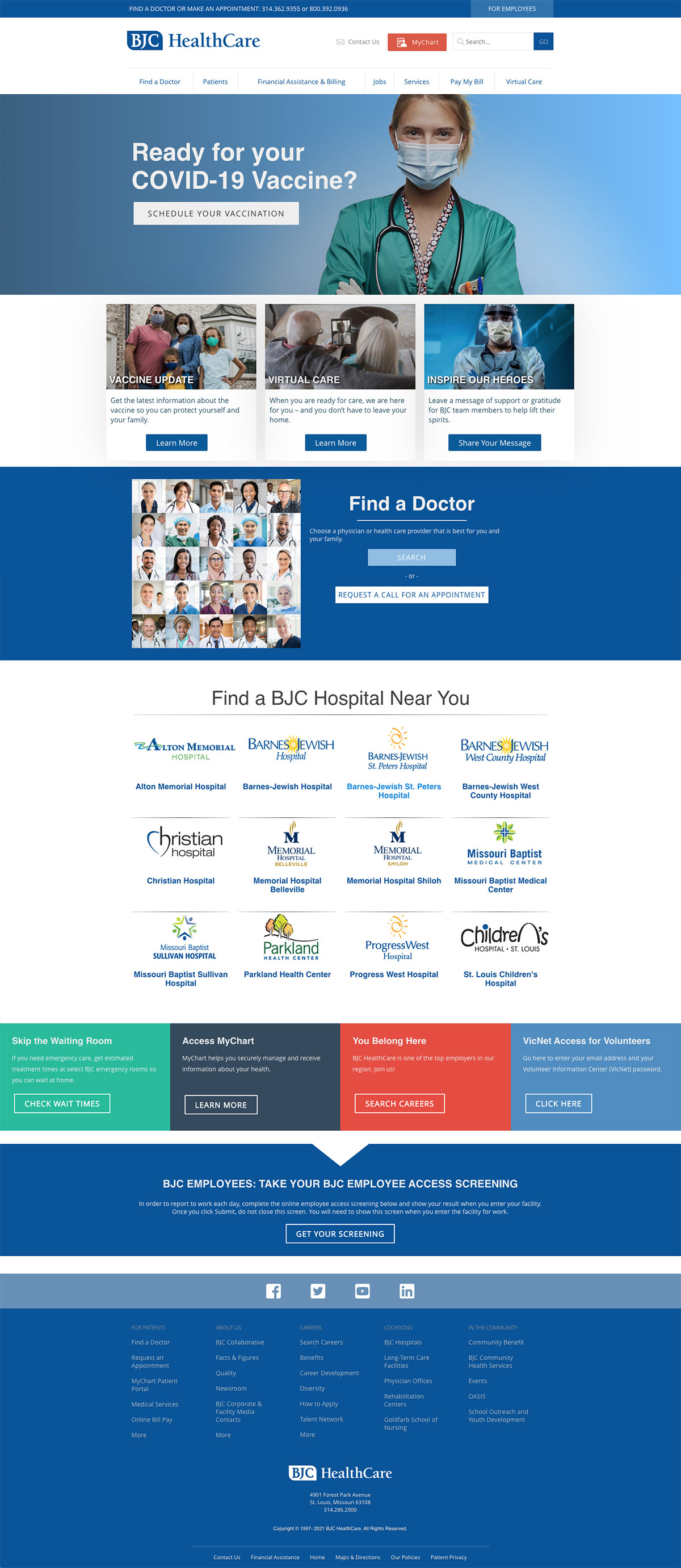 BJC HealthCare home page redesign